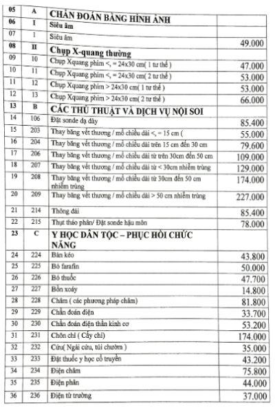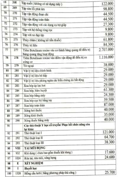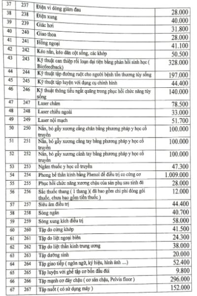 Bảng giá dịch vụ tại Bệnh viện Phục Hồi Chức Năng