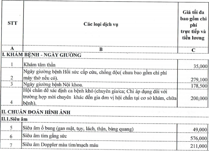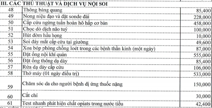 Dưới đây là một số chi phí dịch vụ cơ bản của bệnh viện và có thể thay đổi theo thời gian. Bạn hãy liên hệ trực tiếp tại bệnh viện để có thông tin chính xác và đầy đủ về chi phí dịch vụ nhé.